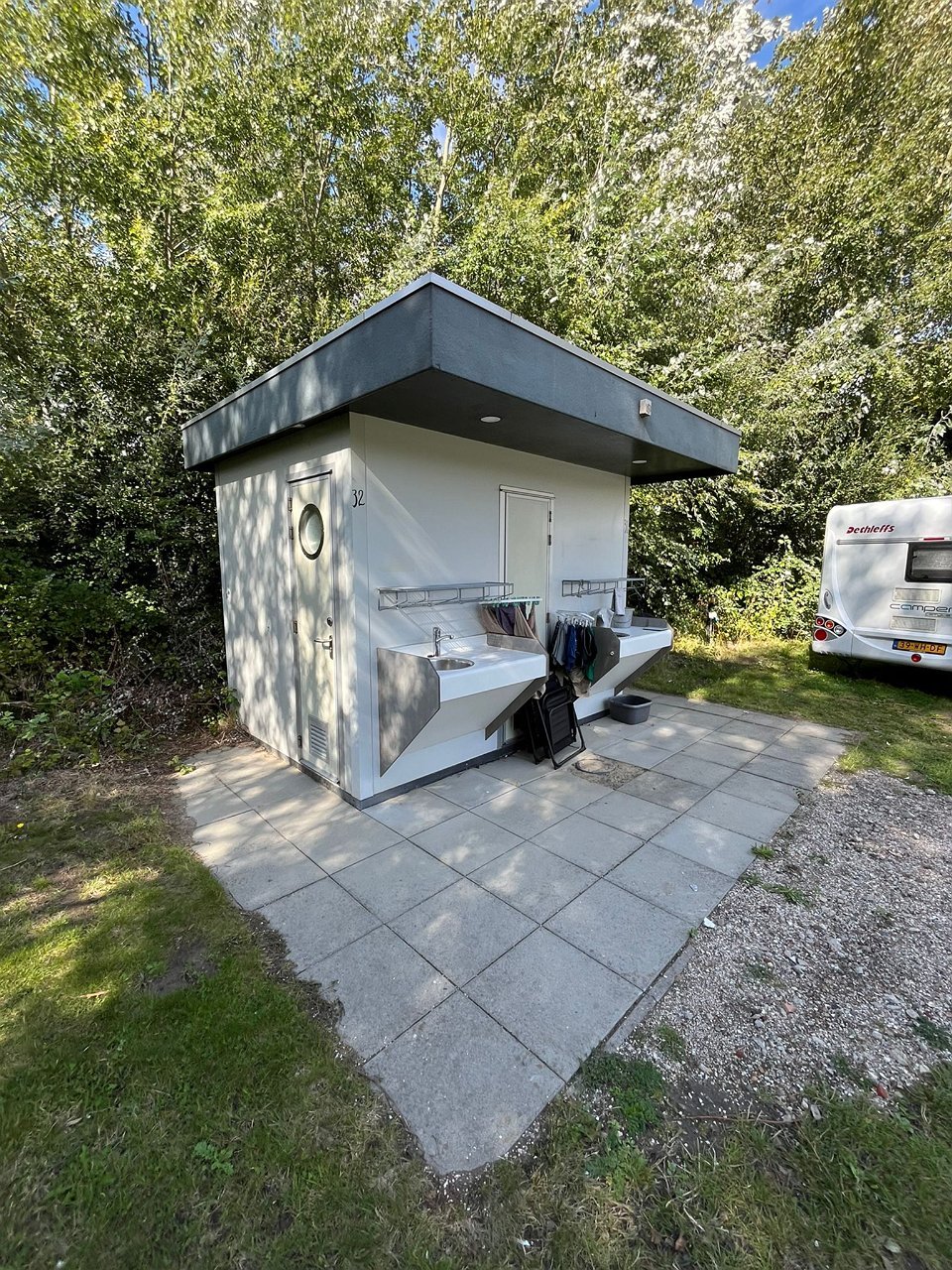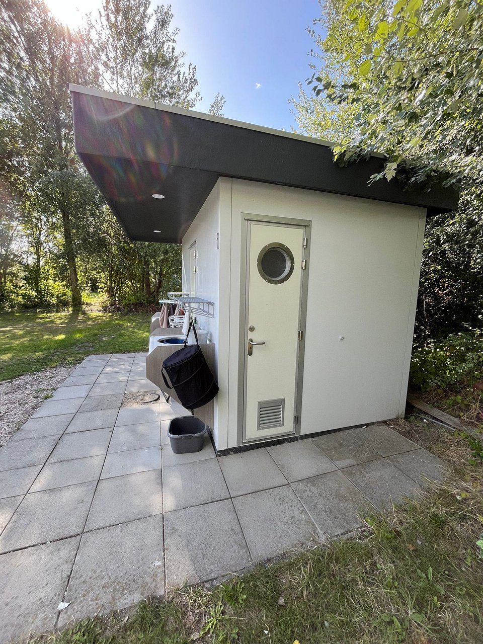 De kampeerplaatsen beschikken over een privé-sanitair unit met douche, toilet en wastafel. Ze zijn voorzien van 16 Amp. stroom.